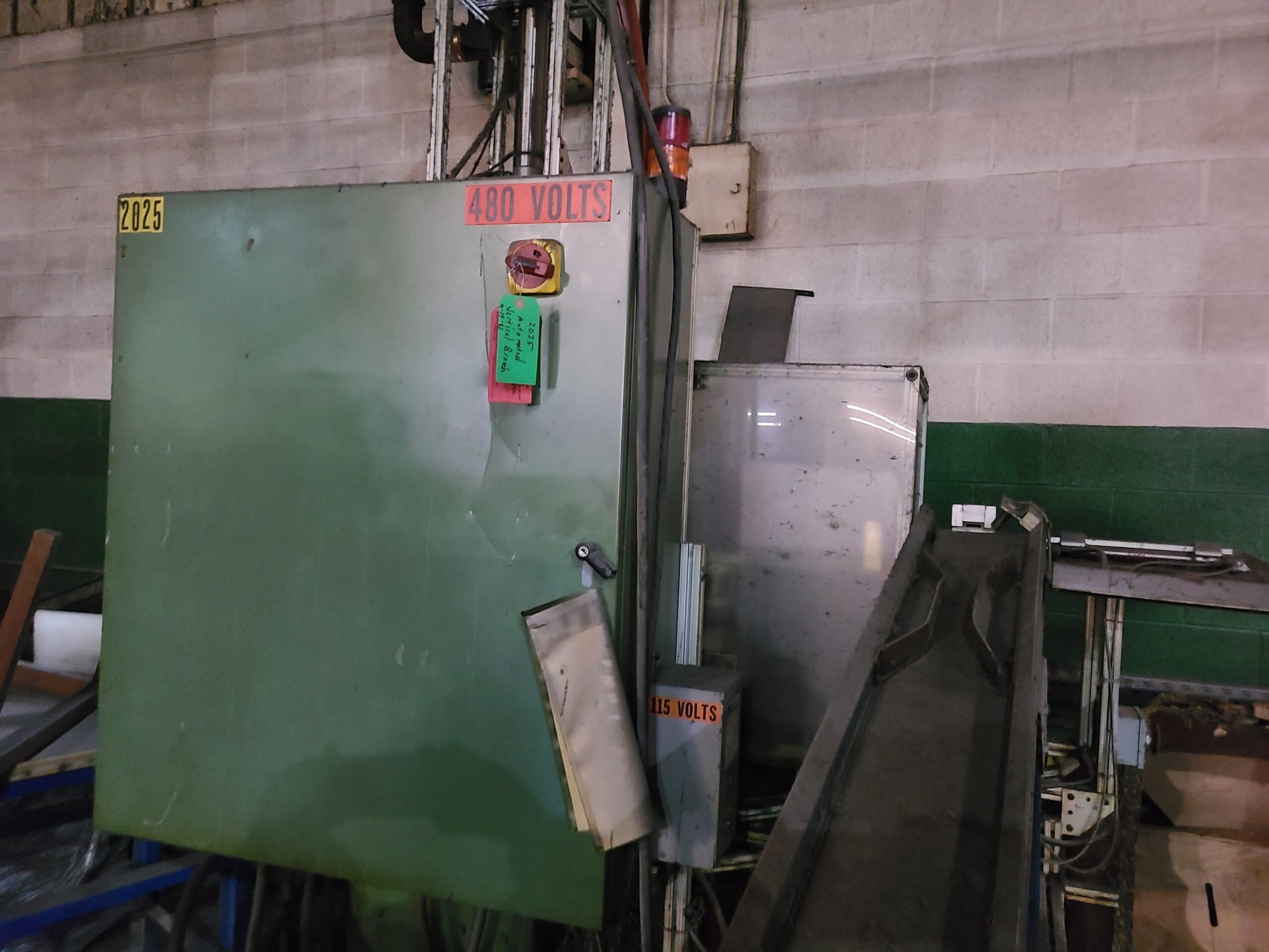 Description: Ransohoff Fixturized rotary indexing table washing system. Electric heater for 140 degree F washing solution and 180 degree F Hot air blow off to dry parts. The tank is insulated. It is set up for 50 second dwell and 10 second indexing time. There are 19 stations. 30 GPM at 500 psi. Tank size is 650 gallons. 480 volts